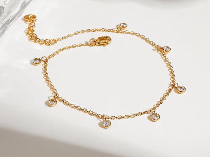 Elevate your wrist game with the Luminous Dewdrop Station Bracelet. This elegant piece features a fine, shimmering gold-tone chain adorned with multiple bezel-set crystal charms that capture and reflect light from every angle. Its minimalist design and radiant finish make it a perfect choice for those who love subtle, high-impact sparkle.